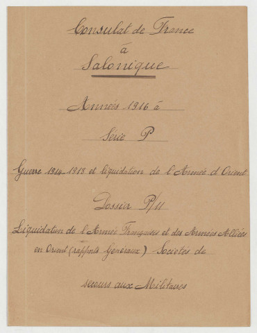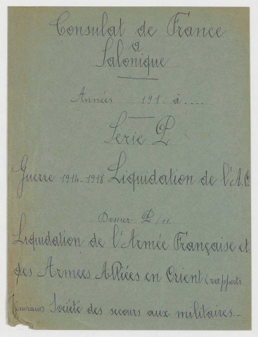 Archives rapatriées du consulat de France à Salonique, série B, 1830-1984, répertoire numérique, Poste, 1983, dactyl. (pour les cartons 1 à 161) ; CADN, 2007, dactyl. (pour les articles 162 à 280) - Ressaisie et fusion, 2020