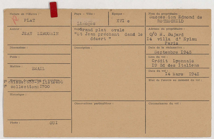 Les fichiers d'œuvres spoliées (série « Fichiers », cotée 209SUP/738-887) ont été établis d'après les déclarations de victimes ou d'après la listes des biens retrouvés en Allemagne et en Autriche.
