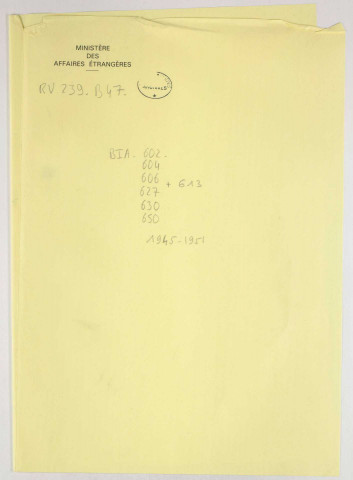 Tous les articles communicables peuvent être reproduits pour usage personnel. Pour les utilisations publiques ou commerciales, il convient de s'enquérir des conditions auprès des Archives diplomatiques.