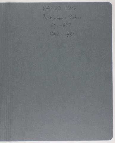 dossiers réalisés par le Service de remise en place des œuvres d'art en 1951.