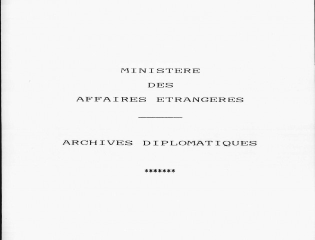 Les documents qui font l'objet de cet inventaire ont été donnés au ministère des Affaires étrangères en 1943, après la mort d'Alexandre Millerand, par le fils de celui-ci Jean.