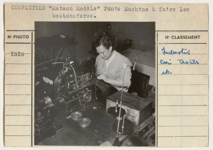 "Confection maison modèle', Tunis : machines à faire les boutonnières".Cliché n°1316