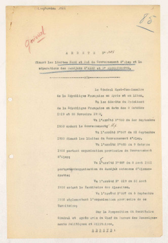Haut-commissariat de la République française au Levant (1919-1922, GR 4 H 43- 44)