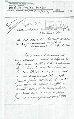 Traité de Versailles du 28 juin 1919, relatif à la paix avec l'Allemagne et à l'institution de la Société des Nations (SDN).