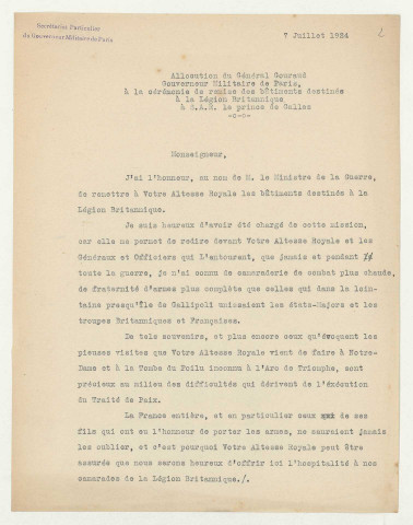 [1] Assez peu d'articles consacrés à son activité au Conseil supérieur de la guerre sont conservés dans ce fonds, essentiellement axés sur sa nomination et les manifestations auxquelles il assista (399 PAAP/214-216).
