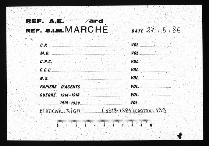 Les registres ayant été versés en volumes reliés de plusieurs années, ne correspondant pas au découpage chronologique ci-dessus, ont été intégrés dans série ad hoc, dite des Volumes par opposition aux sous-séries des Cartons.