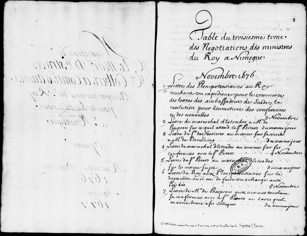 D'Estrades, Croissy, le comte d'Avaux, plénipotentiaires à Nimègue ; des Carrières.
