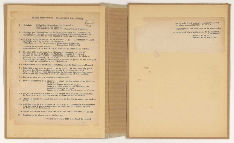 Certains dossiers ne sont pas liés à la récupération artistique (ex. dossier C40bis comprenant la documentation de l'ouvrage de Rose Valland "les fresques d'Aquilée et les origines