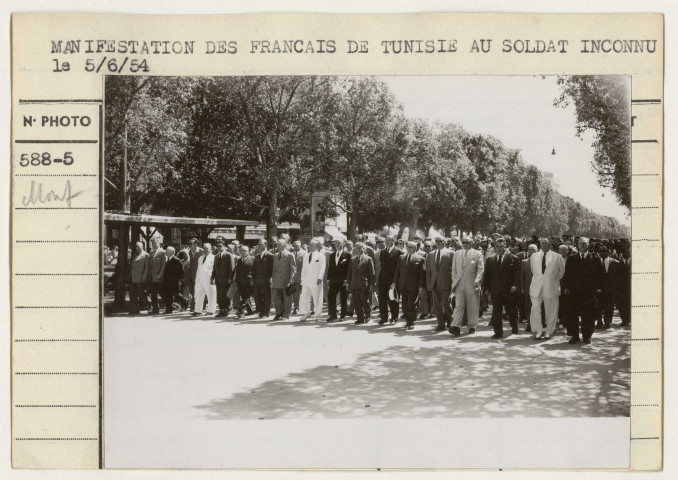 "Manifestation des Français de Tunisie au soldat inconnu". 5 juin 1954.Cliché n° 588-5