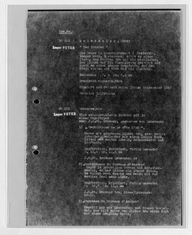 Copies des listes d'œuvres dressées par le service allemand ERR au moment des spoliations. S'y ajoutent des archives retrouvées par les Alliés documentant l'activité de l'ERR.