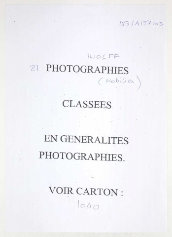 Les fichiers d'œuvres spoliées (série « Fichiers », cotée 209SUP/738-887) ont été établis d'après les déclarations de victimes ou d'après la listes des biens retrouvés en Allemagne et en Autriche.