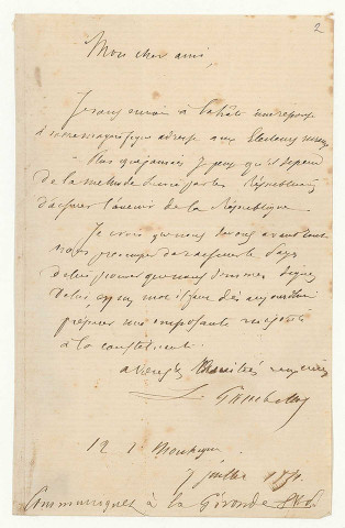 (2) témoigne du goût des hommes politiques de la IIIe République pour les lettres autographes du tribun républicain, goût partagé aussi par Édouard Herriot.