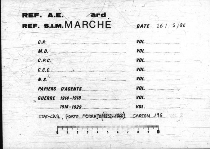 Les registres ayant été versés en volumes reliés de plusieurs années, ne correspondant pas au découpage chronologique ci-dessus, ont été intégrés dans série ad hoc, dite des Volumes par opposition aux sous-séries des Cartons.