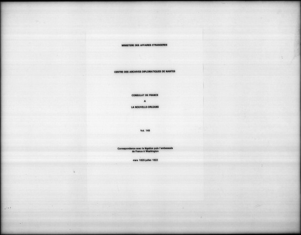 La correspondance des premières années, notamment vers 1830, compte de nombreuses lacunes. À la correspondance proprement dite échangée avec le consulat de La Nouvelle-Orléans, s'ajoutent des circulaires et des instructions adressées par la légation aux postes des États-Unis. Signalons que la correspondance arrivée comprend les lettres non seulement du ministre de France à Washington, mais aussi d'autres diplomates de ce même poste. Les titres des représentants de la France ne sont donnés qu'une fois ; ils ne sont donc reprécisés que dans la mesure où la nature de leurs missions change.