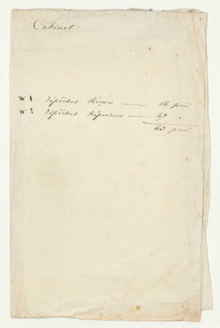 Le fonds est constitué de registres détaillés de correspondance et de liasses de dépêches organisées par tranche chronologique. Le premier article du fonds présentant des papiers divers a été minutieusement décrit dans l'inventaire. Ensuite les liasses de correspondances (art.2-art.68) semblent répondre à un plan de classement plus systématique, organisé comme suit : correspondance avec les services centraux du Ministère des affaires étrangères, dont le cabinet du Ministre, les divisions politiques et d'autres directions comme celles des affaires consulaires, des chancelleries, des fonds, des affaires commerciales et des archives, avec les postes diplomatiques (ambassades, consulats et légations), avec d'autres organes de l'administration (Cabinet du Roi, ministères, préfectures, autorités militaires, musées, etc.), avec les consuls étrangers présents à Marseille, avec les particuliers. Enfin chaque année s'achève par le bilan comptable de l'agence (art.5-art.68). Le dernier article (art.69) regroupe la documentation utile aux agents en charge de l'agence : notes, mémoires, dépêches et circulaires sur les actes de chancellerie.