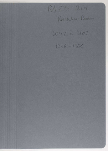 dossiers réalisés par le Service de remise en place des œuvres d'art en 1951.