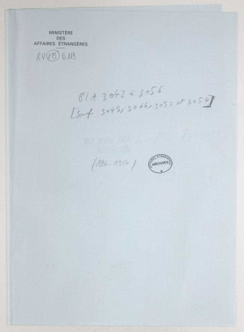 Tous les articles communicables peuvent être reproduits pour usage personnel. Pour les utilisations publiques ou commerciales, il convient de s'enquérir des conditions auprès des Archives diplomatiques.