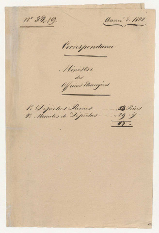 Le fonds est constitué de registres détaillés de correspondance et de liasses de dépêches organisées par tranche chronologique. Le premier article du fonds présentant des papiers divers a été minutieusement décrit dans l'inventaire. Ensuite les liasses de correspondances (art.2-art.68) semblent répondre à un plan de classement plus systématique, organisé comme suit : correspondance avec les services centraux du Ministère des affaires étrangères, dont le cabinet du Ministre, les divisions politiques et d'autres directions comme celles des affaires consulaires, des chancelleries, des fonds, des affaires commerciales et des archives, avec les postes diplomatiques (ambassades, consulats et légations), avec d'autres organes de l'administration (Cabinet du Roi, ministères, préfectures, autorités militaires, musées, etc.), avec les consuls étrangers présents à Marseille, avec les particuliers. Enfin chaque année s'achève par le bilan comptable de l'agence (art.5-art.68). Le dernier article (art.69) regroupe la documentation utile aux agents en charge de l'agence : notes, mémoires, dépêches et circulaires sur les actes de chancellerie.