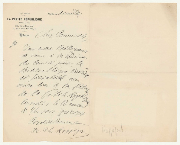 (2) témoigne du goût des hommes politiques de la IIIe République pour les lettres autographes du tribun républicain, goût partagé aussi par Édouard Herriot.