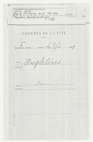 Tous les articles communicables peuvent être reproduits pour usage personnel. Pour les utilisations publiques ou commerciales, il convient de s'enquérir des conditions auprès des Archives diplomatiques.