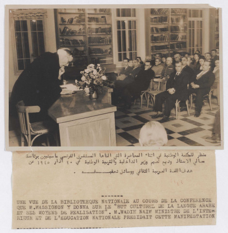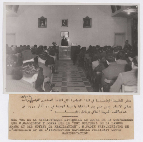 Conférence de M. Massignon sur le "but culturel de la langue arabe et ses moyens de réalisation"