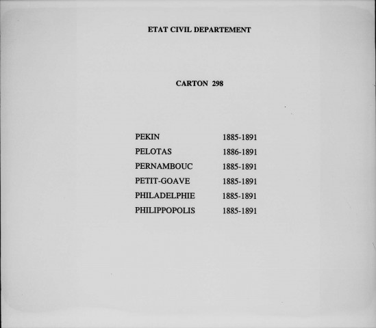 En 1994, date de la première rédaction du présent inventaire, la collection des registres duplicata versés à la direction des Archives s'étendait des origines de l'état civil consulaire (soit l'extrême fin du XVIIIe siècle pour les registres les plus anciens) à 1891.