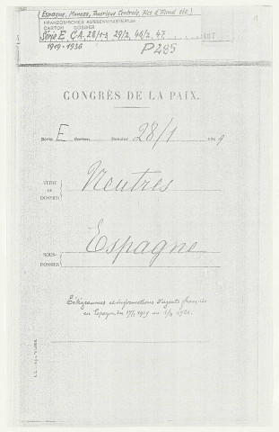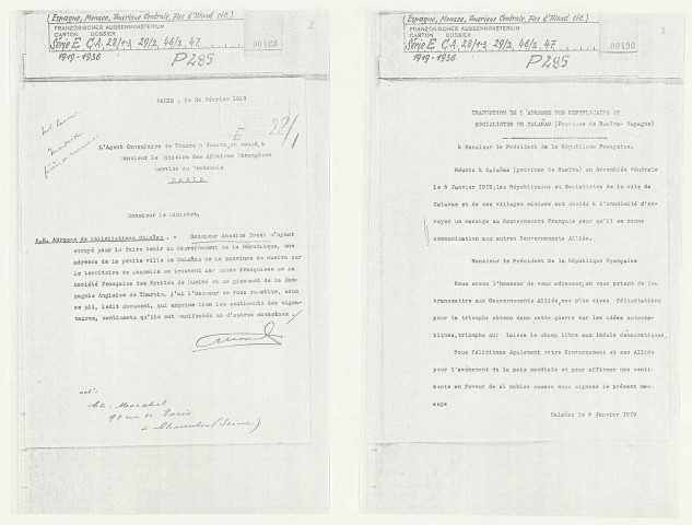 Mouvement républicain et socialiste, situation agraire, manœuvres commerciales de l'Allemagne, avis du Roi d'Espagne sur les conditions de paix et leurs conséquences en Europe notamment l'armement et la Société des Nations (février 1919-janvier 1921).