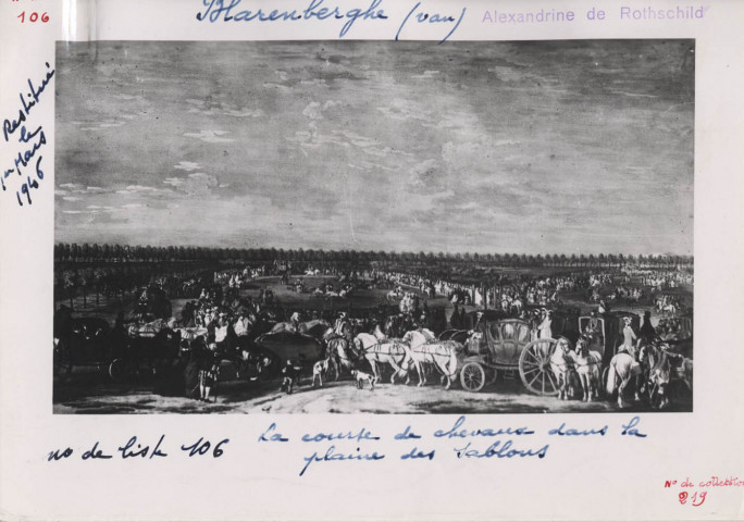 Cette sous-série contient un ensemble de photographies indexées et classées alphabétiquement par nom de personnes (victimes, spoliateurs) ou par services ou institutions (ERR, Collectings Points, Dorotheum, etc.). La majorité des photographies provient des dossiers de réclamation adressés à la Commission de récupération artistique.