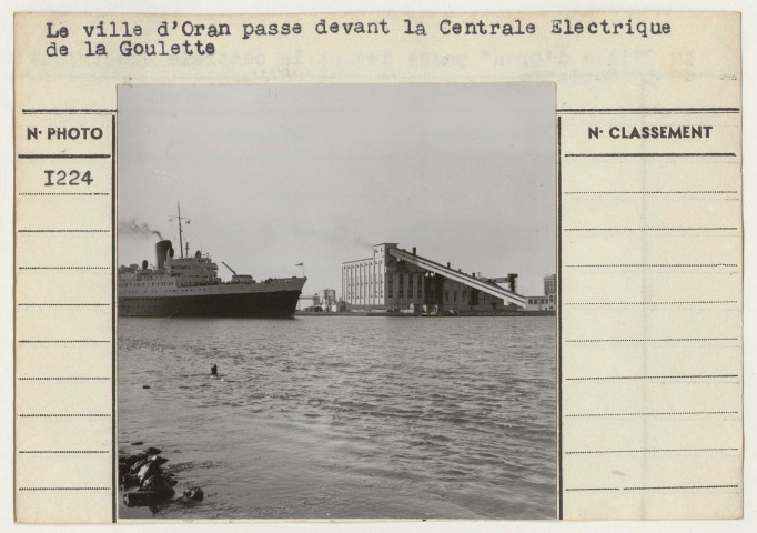 "La Ville d'Oran [bateau] passe devant la centrale électrique de la Goulette".Cliché n°1224