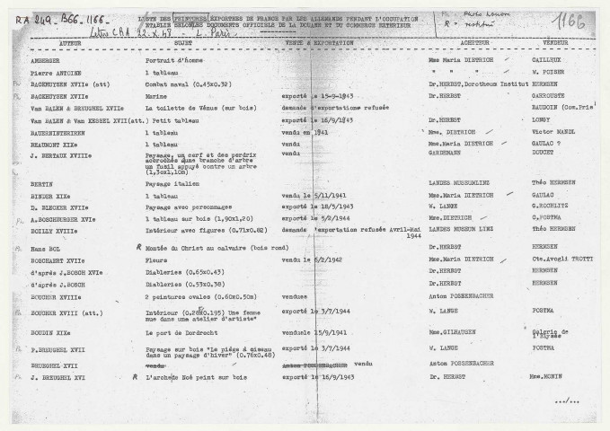 Les fichiers d'œuvres spoliées (série « Fichiers », cotée 209SUP/738-887) ont été établis d'après les déclarations de victimes ou d'après la listes des biens retrouvés en Allemagne et en Autriche.