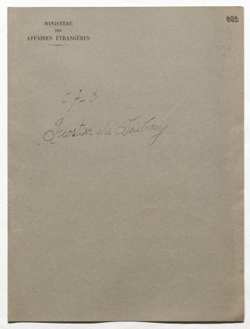 Tous les articles communicables peuvent être reproduits pour usage personnel. Pour les utilisations publiques ou commerciales, il convient de s'enquérir des conditions auprès des Archives diplomatiques.