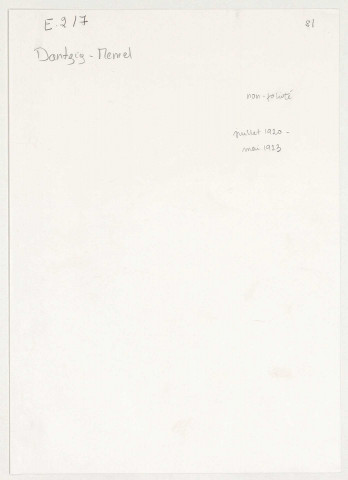 Occupation interalliée, évacuation des troupes allemandes (mai 1919-mai 1923), hostilités germano-polonaises (juillet 1919-juin 1921). Réquisitions allemandes, crise du travail (juin 1919-janvier 1920), matériel enlevé pendant la Première Guerre mondiale et retrouvé (août 1919-août 1920), socialistes et démocrates de Dantzig et bolchévistes (août 1919-août 1920), transit de troupes polonaises, matériel de guerre et matières premières (juillet-octobre 1919), rapatriement des prisonniers de guerre et de démobilisés (septembre 1919).