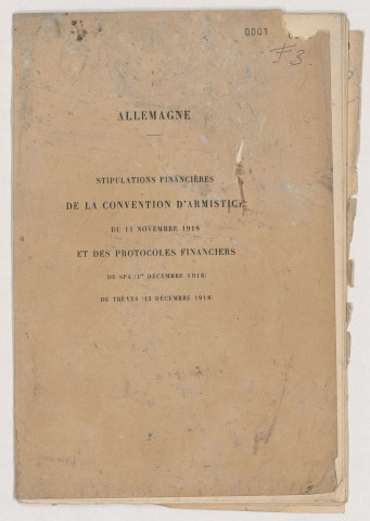 Stipulations financières de la convention d'armistice avec l'Allemagne et des protocoles financiers de Spa et de Trèves (décembre 1918).
