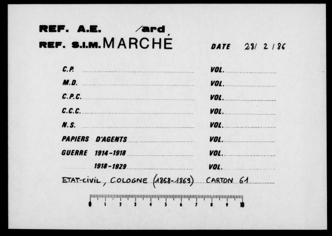 Les registres ayant été versés en volumes reliés de plusieurs années, ne correspondant pas au découpage chronologique ci-dessus, ont été intégrés dans série ad hoc, dite des Volumes par opposition aux sous-séries des Cartons.