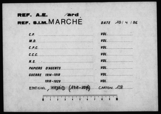 Les registres ayant été versés en volumes reliés de plusieurs années, ne correspondant pas au découpage chronologique ci-dessus, ont été intégrés dans série ad hoc, dite des Volumes par opposition aux sous-séries des Cartons.