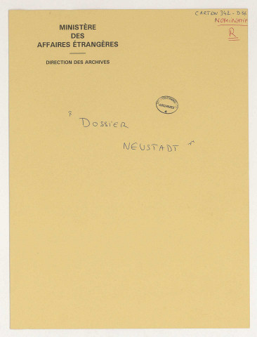 Tous les articles communicables peuvent être reproduits pour usage personnel. Pour les utilisations publiques ou commerciales, il convient de s'enquérir des conditions auprès des Archives diplomatiques.