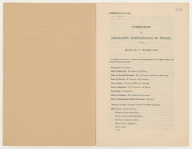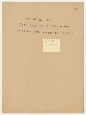 La série K du fonds de la CPCA traite des débats engagés pendant la Conférence de paix pour l'établissement de normes internationales en matière de législation du travail. Cette initiative mènera à la création de l'Organisation internationale du travail (OIT).