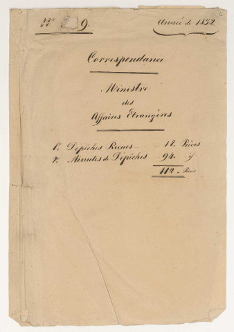 La correspondance consulaire et commerciale, 1793-1901, séries CCC.