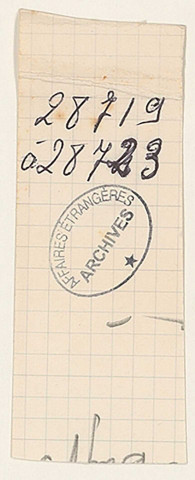 Tous les articles communicables peuvent être reproduits pour usage personnel. Pour les utilisations publiques ou commerciales, il convient de s'enquérir des conditions auprès des Archives diplomatiques.