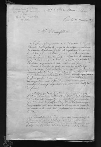 Projet de loi relatif à l'interprétation des lois avec l'exposé des motifs par M. le garde des sceaux, ministre de la justice, [Paris], [1828], Chambre des pairs, impressions diverses, session de 1828, Tome III, n° 124.