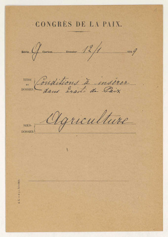 Point de vue de l'agriculture au sujet de l'évaluation des dommages de guerre et des conditions de paix (janvier 1919-mai 1919).