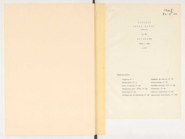 Retirés de la succession de Jules Favre à son décès en 1880 et remis au ministère des Affaires étrangères.