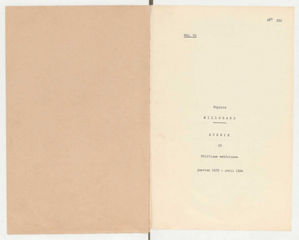 Les documents qui font l'objet de cet inventaire ont été donnés au ministère des Affaires étrangères en 1943, après la mort d'Alexandre Millerand, par le fils de celui-ci Jean.