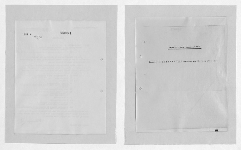 [Inventaires ERR et liste de caisses pour dix collections et UNB envoyées à Seisenegg (Amstetten) (18 et 23 nov. 1943) ainsi que 6 autres collections M-aktion]