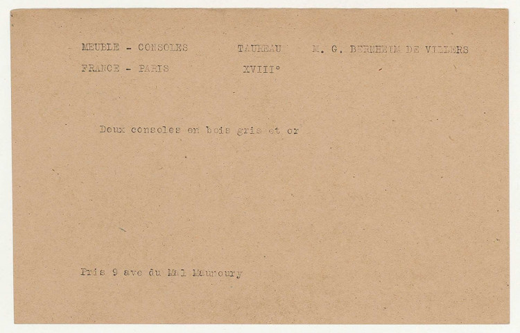 Les fichiers d'œuvres spoliées (série « Fichiers », cotée 209SUP/738-887) ont été établis d'après les déclarations de victimes ou d'après la listes des biens retrouvés en Allemagne et en Autriche.