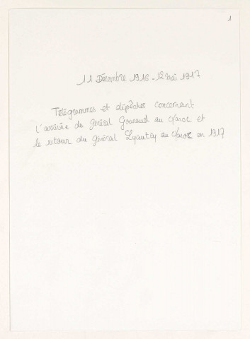 [1] Assez peu d'articles consacrés à son activité au Conseil supérieur de la guerre sont conservés dans ce fonds, essentiellement axés sur sa nomination et les manifestations auxquelles il assista (399 PAAP/214-216).