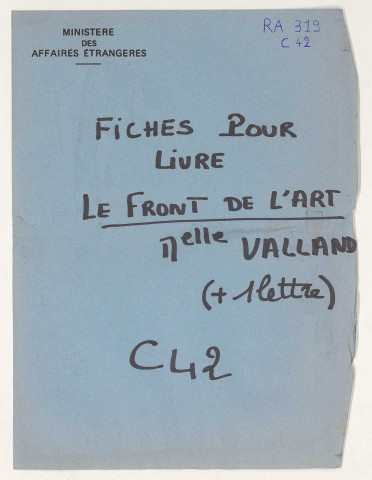 Certains dossiers ne sont pas liés à la récupération artistique (ex. dossier C40bis comprenant la documentation de l'ouvrage de Rose Valland "les fresques d'Aquilée et les origines