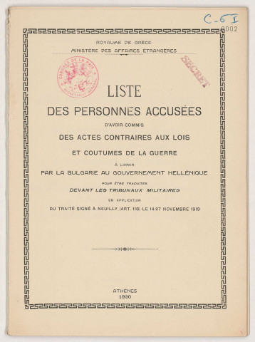 Traité de Neuilly-sur-Seine du 27 novembre 1919, relatif à la paix avec la Bulgarie.