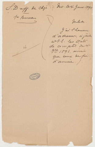 La correspondance ayant trait aux questions d'archives et de chancellerie, bien que n'ayant pas toujours été traitée au sein d'une même direction, a été regroupée pour des raisons de commodité, tant la politique du Département a connu de fluctuations en ce domaine. L'état civil, le protocole, le personnel, les « renseignements » sur les particuliers, la correspondance avec ces derniers dans son aspect contentieux ont selon les époques été traitées par la direction des Chancelleries de la réorganisation de Talleyrand, par la section des Archives de l'organigramme de Caulaincourt, par la division des Chancelleries et la section des Archives des réformes du baron de Damas ou encore par la division des Archives mise en place par Polignac. Tant que chacun de ces secteurs ne s'est pas individualisé, les courriers les concernant ont été maintenus dans cette grande entité, et ce d'autant plus volontiers que les séries présentent des lacunes. Il convient donc de signaler au lecteur qu'il pourra rencontrer dans ces articles des courriers relatifs aux questions de personnel. Des correspondances contentieuses concernant des particuliers figurent dans l'article 1 (10 août et 5 novembre 1818) ; d'autres peuvent également se rencontrer pour la période la plus ancienne dans les articles de correspondance avec la Division commerciale (articles 23 24).