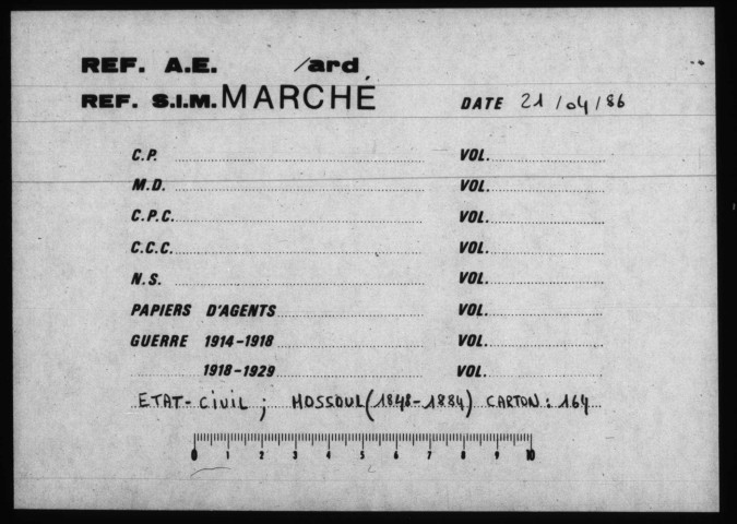 Les registres ayant été versés en volumes reliés de plusieurs années, ne correspondant pas au découpage chronologique ci-dessus, ont été intégrés dans série ad hoc, dite des Volumes par opposition aux sous-séries des Cartons.